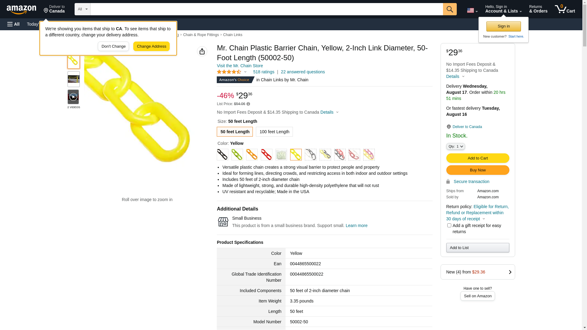 Mr. Chain Plastic Barrier Chain, Yellow, 2-Inch Link Diameter, 50-Foot Length (50002-50)