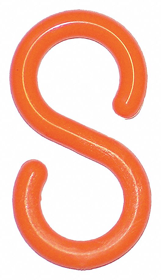 | Feature | <b>Price For:</b> Each <b>Finish</b>: Gloss <b>Item</b>: S-Hook <b>Size</b>: 2" <b>Application</b>: Outdoor or Indoor <b>Color</b>: Orange <b>Material</b>: UV Inhibited Polyethylene <b>Country of Origin (subject to change)</b>: United States |