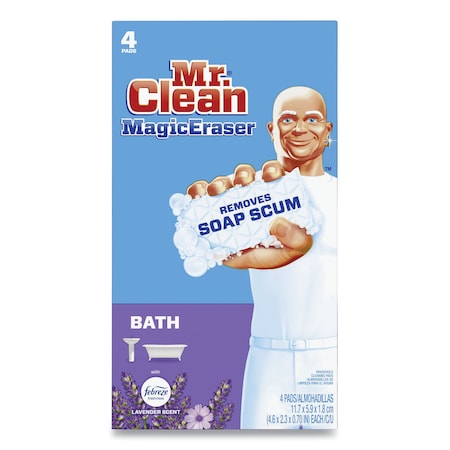 Mr. Clean Magic Eraser for Bath and Bathroom, Removes Soap Scum, Lavender Scent, 4 Pads