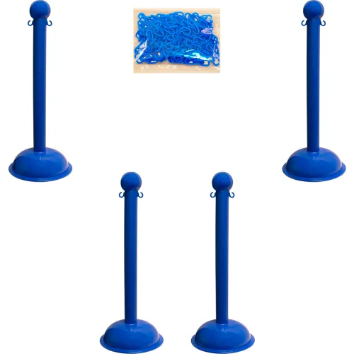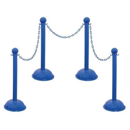 Mr. Chain Plastic Stanchion Kit, 30', 2"HD Chain, C-Hooks, 3"Pole, 16"Base, 41"H, Blue, 4pk