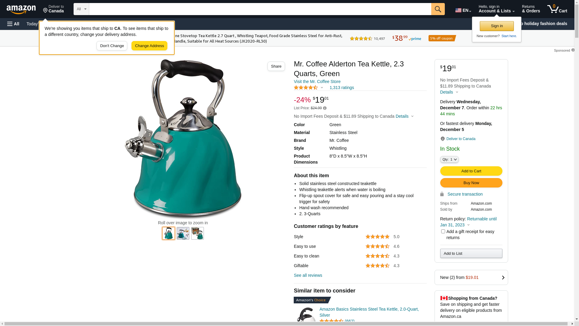 Mr Coffee 92114.01 Alberton Tea Kettle with Lid & Emerald, Green