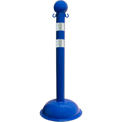 Mr. Chain 32" Pole, 41"H, With Ball Top & C-Hook, 16" Base, HDPE, Blue w/ DOT Strip