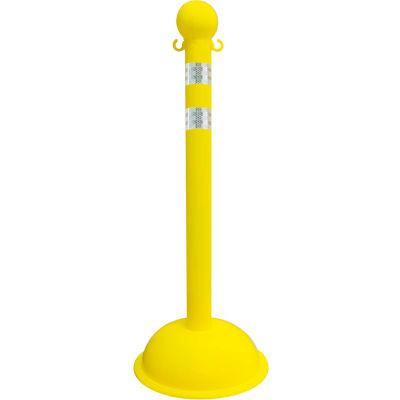 Mr. Chain 32" Pole, 41"H, With Ball Top & C-Hook, 16" Base, HDPE, Yellow w/ DOT Strip