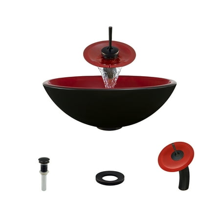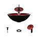 <ul> <li>CONTEMPORARY STYLING The power of bold colors is flaunted in this strikingly rich red interior, countered by a brash black exterior; both highly polished</li> <li>DISTINCTIVE INSTALLATION Resting on the vanity, the glass vessel sink draws attention as a work of art as well as a functional element of the bath; the brilliance of glass is something to behold</li> <li>INHERENT DURABILITY Tempered glass, tough and thick, offers a strong, hygienic, non-porous surface; stain-resistant, heat-resistant, and odor-resistant</li> <li>GUARANTEED QUALITY A Lifetime Warranty covers the sink, and a One-Year Warranty covers all accessories</li> </ul>