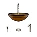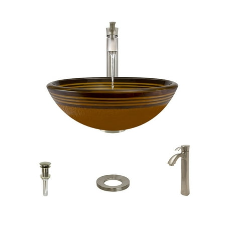<ul> <li>CONTEMPORARY STYLING With an overall golden, mottled appearance; an orange glow surges upward into a yellow midsection, capped by distinct, alternating brown and yellow bands toward its rim</li> <li>DISTINCTIVE INSTALLATION Resting on the vanity, the glass vessel sink draws attention as a work of art as well as a functional element of the bath; the brilliance of glass is something to behold</li> <li>INHERENT DURABILITY Tempered glass, tough and thick, offers a strong, hygienic, non-porous surface; stain-resistant, heat-resistant, and odor-resistant</li> <li>GUARANTEED QUALITY A Lifetime Warranty covers the sink, and a One-Year Warranty covers all accessories</li> </ul>
