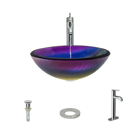 MR Direct 619-718-C Glass Vessel Sink in Rainbow Frost with Faucet and Pop-Up Drain in Chrome, 718, Multi