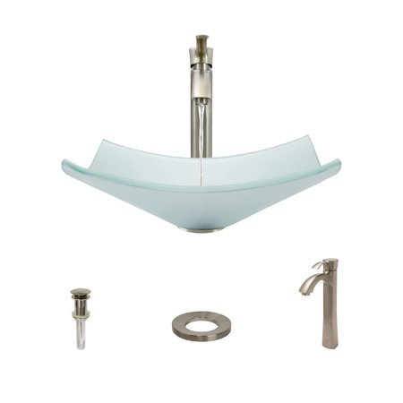 <ul> <li>CONTEMPORARY STYLING Frosted glass makes a dramatic statement in this squared vessel with bowed sides and raised corners; simple yet bold brilliance</li> <li>DISTINCTIVE INSTALLATION Resting on the vanity, the glass vessel sink draws attention as a work of art as well as a functional element of the bath; the brilliance of glass is something to behold</li> <li>INHERENT DURABILITY Tempered glass, tough and thick, offers a strong, hygienic, non-porous surface; stain-resistant, heat-resistant, and odor-resistant</li> <li>GUARANTEED QUALITY A Lifetime Warranty covers the sink, and a One-Year Warranty covers all accessories</li> </ul>