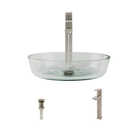 625 Aqua Brushed Nickel Bathroom 721 Vessel Faucet Ensemble (Bundle - 3 Items: Vessel Sink, Vessel Faucet and Pop-Up Drain)