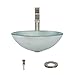 | Feature | CONTEMPORARY STYLING -Iridescent foil, embedded in its crystal base, emits a dazzling array of speckled colors throughout; concentric ridges repeat up its frosted exterior in contrast to its smooth, glossy interior|DISTINCTIVE INSTALLATION - Resting on the vanity, the glass vessel sink draws attention as a work of art as well as a functional element of the bath; the brilliance of glass is something to behold|INHERENT DURABILITY - Tempered glass, tough and thick, offers a strong, hygienic, non-porous surface; stain-resistant, heat-resistant, and odor-resistant| D QUALITY - A Lifetime covers the sink, and a One-Year covers all accessories |