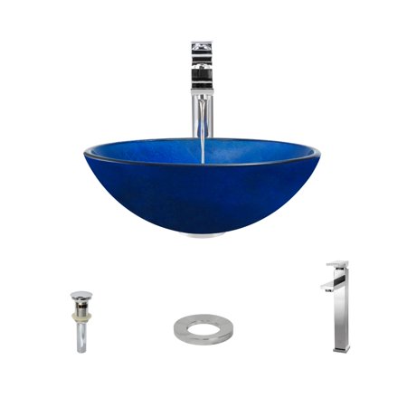 <ul> <li>CONTEMPORARY STYLING Embedded in the base, a rich, royal blue foil is sprinkled with hints of magenta and silver creating a rich iridescent appearance</li> <li>DISTINCTIVE INSTALLATION Resting on the vanity, the glass vessel sink draws attention as a work of art as well as a functional element of the bath; the brilliance of glass is something to behold</li> <li>INHERENT DURABILITY Tempered glass, tough and thick, offers a strong, hygienic, non-porous surface; stain-resistant, heat-resistant, and odor-resistant</li> <li>GUARANTEED QUALITY A Lifetime Warranty covers the sink, and a One-Year Warranty covers all accessories</li> </ul>