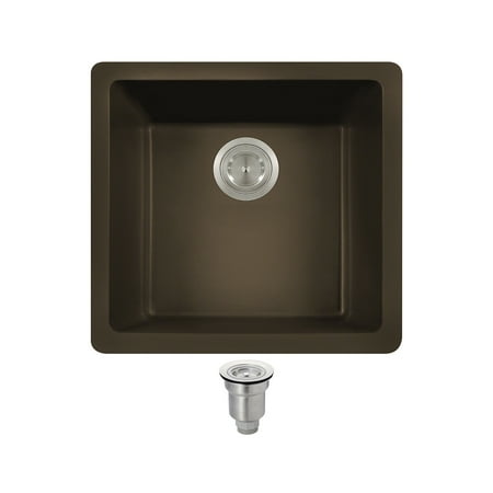 Dual-Mount Granite Sink 17-3/4 in. Single Bowl Kitchen Sink in Mocha with Basket Strainer