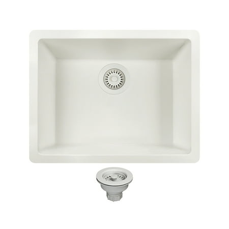 Dual-Mount Granite Sink 21-5/8 in. Single Bowl Kitchen Sink in White with Matching Strainer