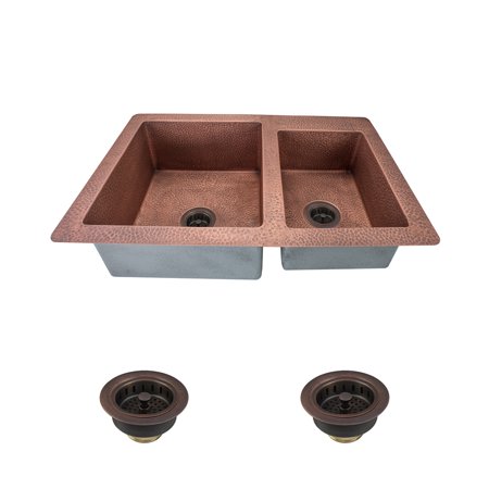 <ul> <li>CONTEMPORARY STYLING Two bowls, one large and a smaller prep style, unite in this hand-hammered beauty created by artisans from 99% pure copper</li> <li>LIVING FINISH The surface of this basin breathes in a constant reaction with the atmosphere and generates an ever-changing patina; a finish which adds old-world character to the coppers appearance</li> <li>NOISE CESSATION The tinny sounds of running water or echo of dropped dishware is muffled by sound-dampening pads applied to its underside</li> <li>MOISTURE BARRIER The exterior is sprayed with our specially formulated anti-condensation compound</li> </ul>
