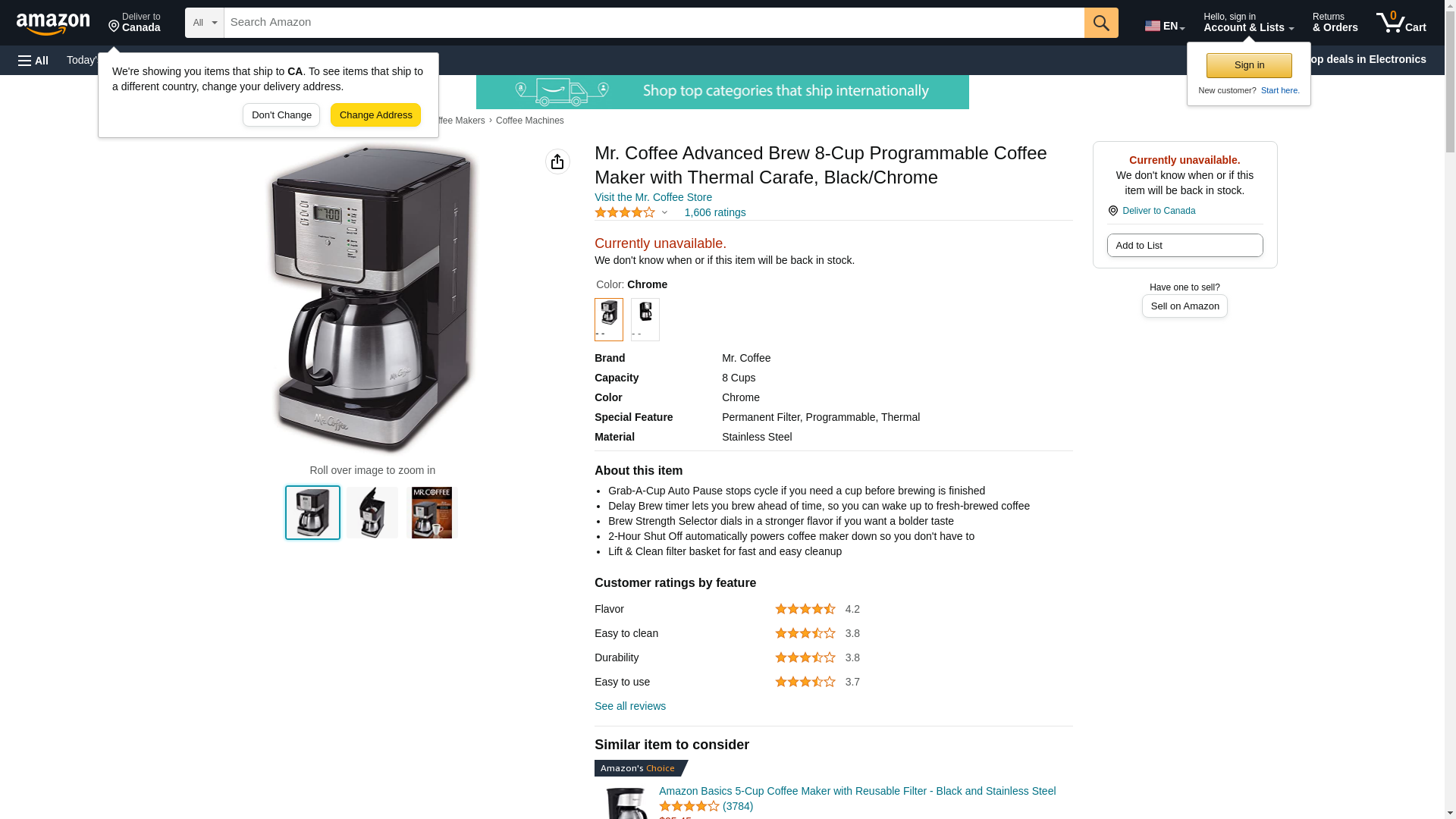 Mr. Coffee JWTX95 Advanced Brew 8-Cup Programmable Coffee Maker with Thermal Carafe, Black/Chrome
