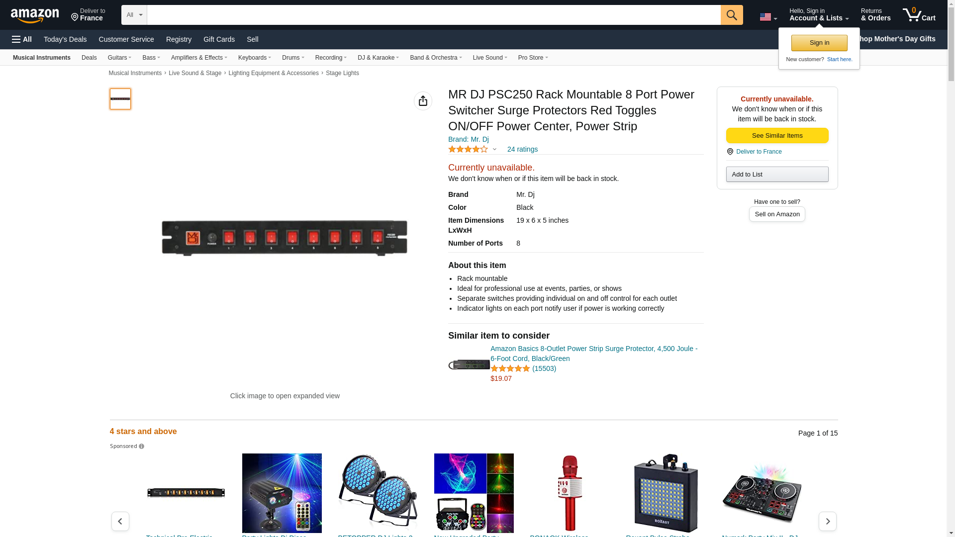 MR DJ PSC250 Rack Mountable 8 Port Power Switcher Surge Protectors Red Toggles ON/OFF Power Center, Power Strip