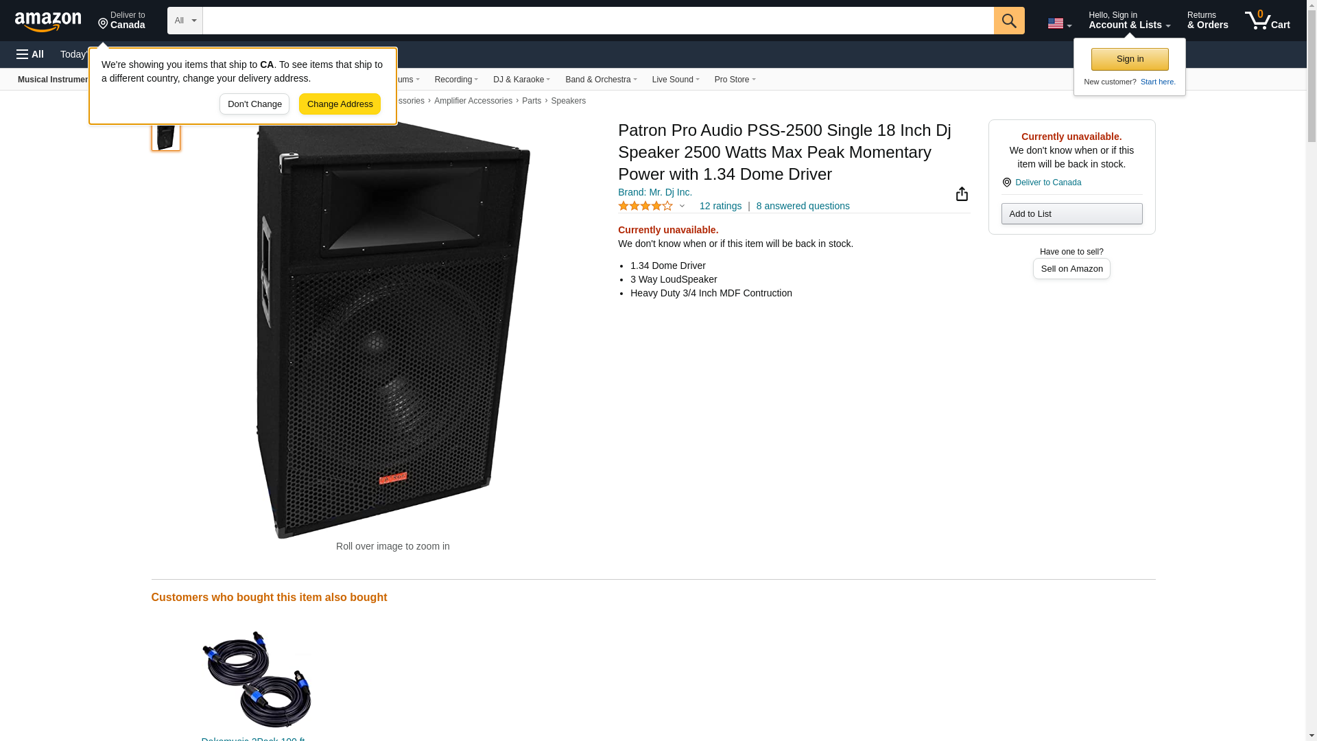 MrDj PSS2500 Patron Pro Audio Single 18 Inch Dj Speaker 2500 Watts Max Peak Momentary Power with 1.34 Dome Driver