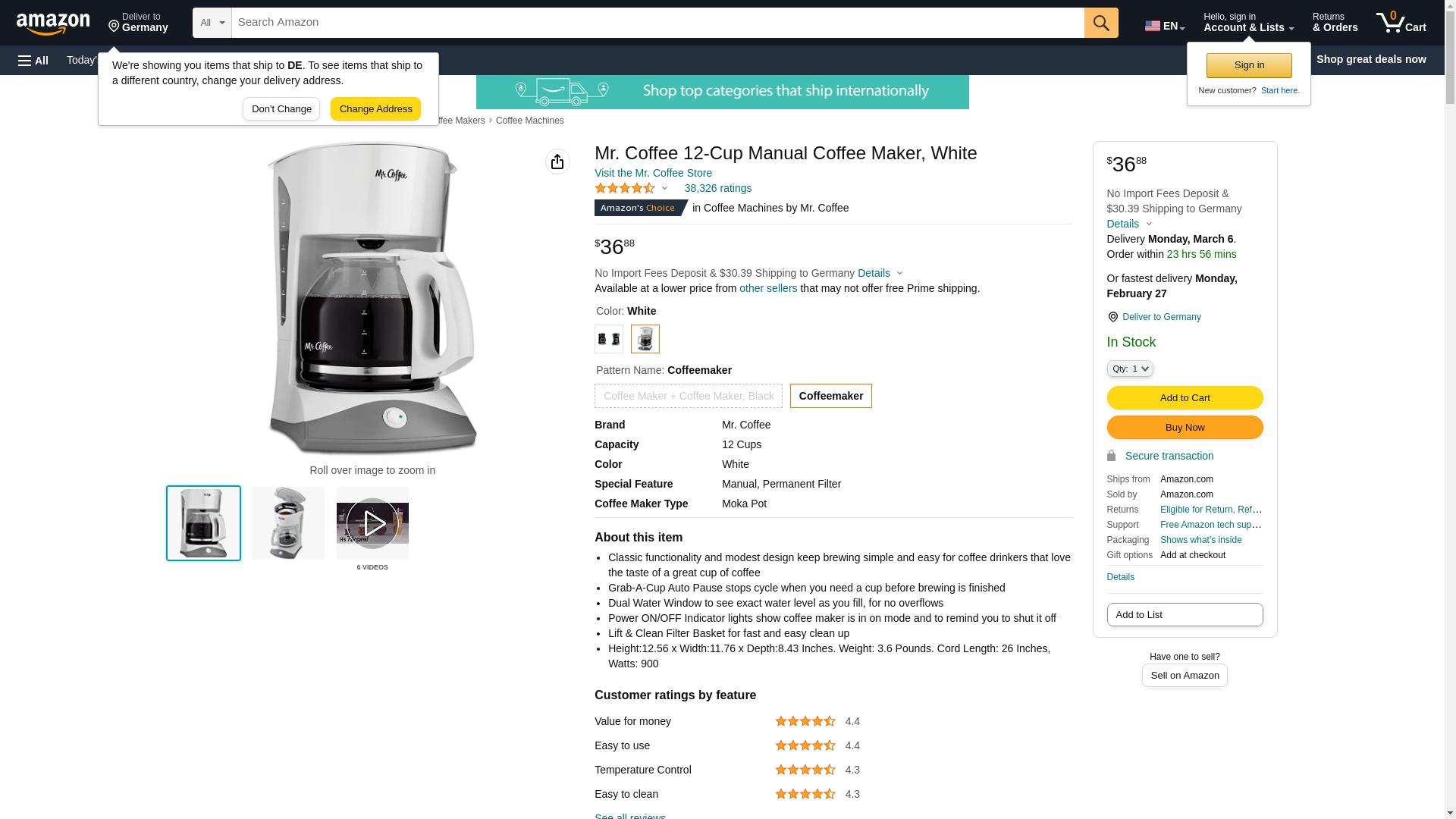 Mr. Coffee 12-Cup Manual Coffee Maker, White