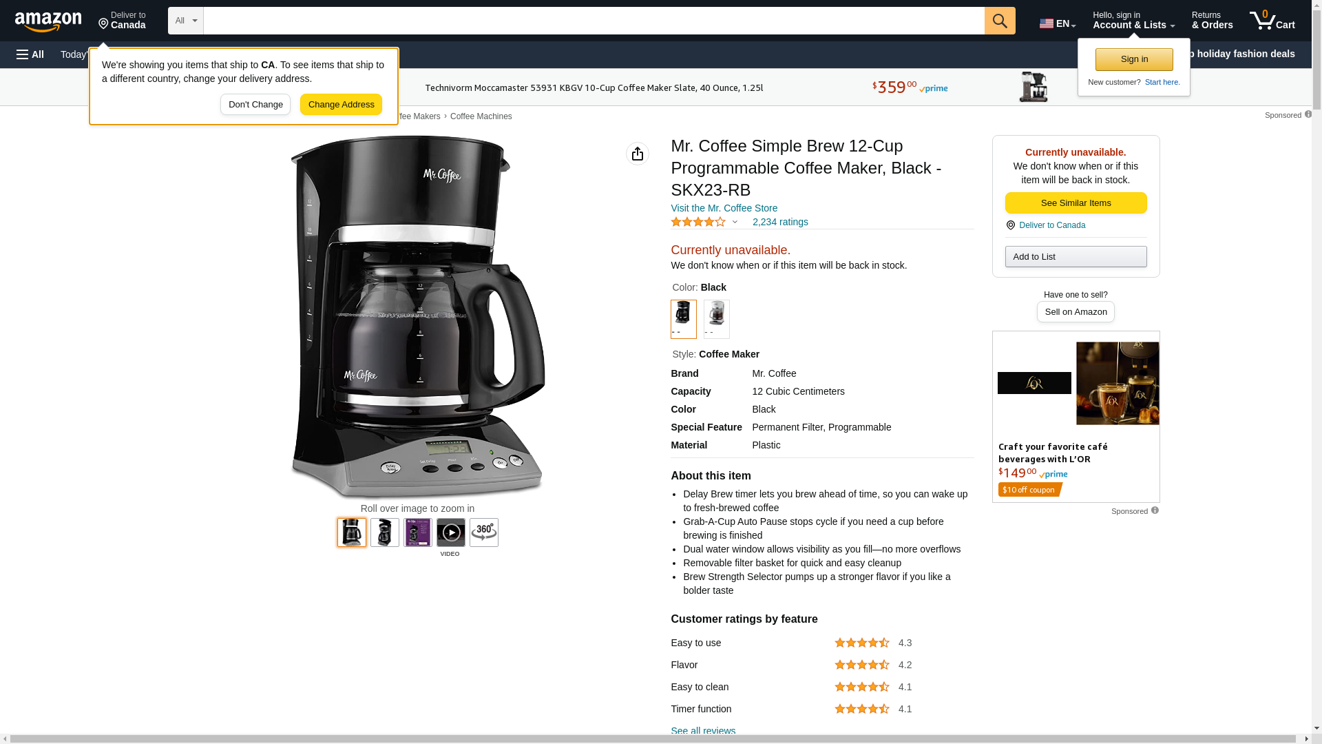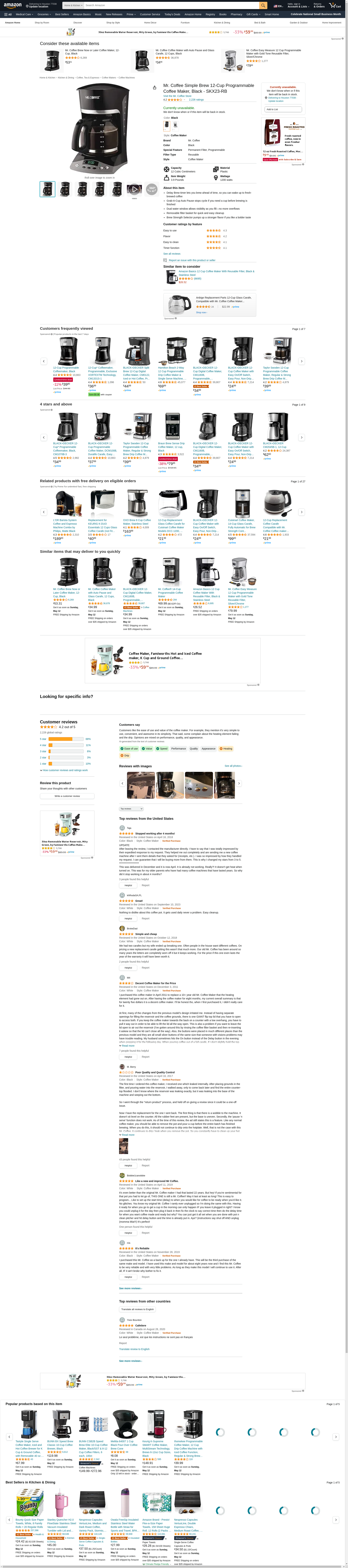Mr. Coffee Simple Brew 12-Cup Programmable Coffee Maker, Black - SKX23-RB