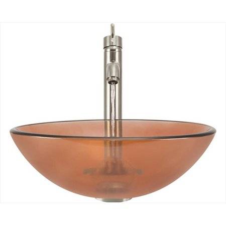 <p>Make a personal design statement with the MR Direct 601-CO ensemble a distinctive, vessel-sink and 718 vessel-faucet combination. MR Direct glass vessel sinks are created of thick, tempered glass, making them less vulnerable to damage from high temperatures. The non-porous, polished surface is extremely attractive and sanitary naturally resistant to stains, odors and discoloration. The tall, sleek design of the 726 vessel-faucet features a solid-brass waterway construction, and an extended swivel handle to control water flow and temperature. The ensemble includes a specially-designed, vessel pop-up drain that springs into place with a gentle touch. A matching sink ring is also provided for support of the bowl - required for the above-counter installation.</p> <b>Features</b> <ul> <li>Finish - Coral Brushed Nickel.</li> <li>Dimension - 16.5 x 16.5 x 5.75 in.</li> </ul>- SKU: MRDCT442