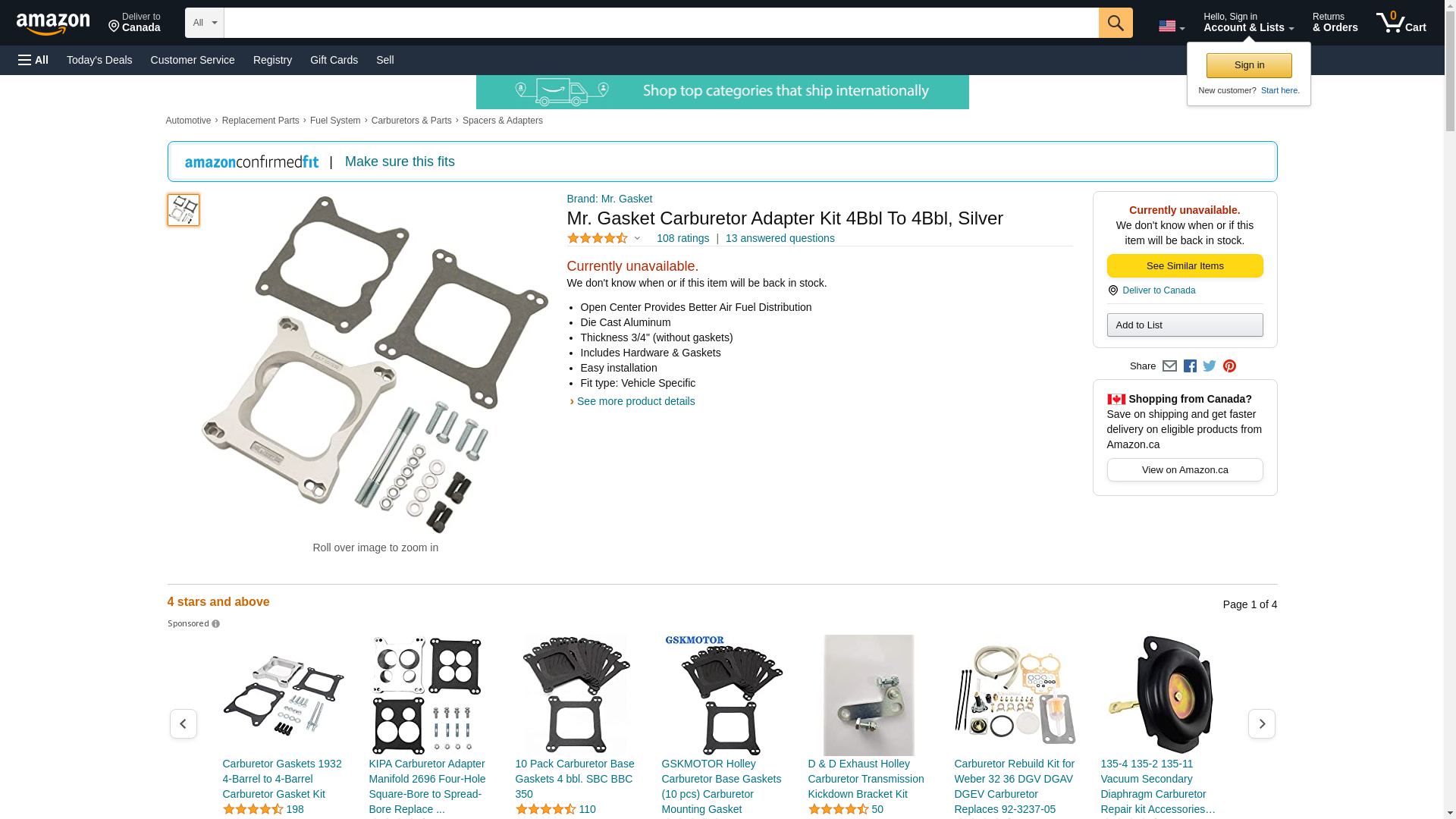 Mr. Gasket 1932 4-Barrel to 4-Barrel Carburetor Adapter Kit