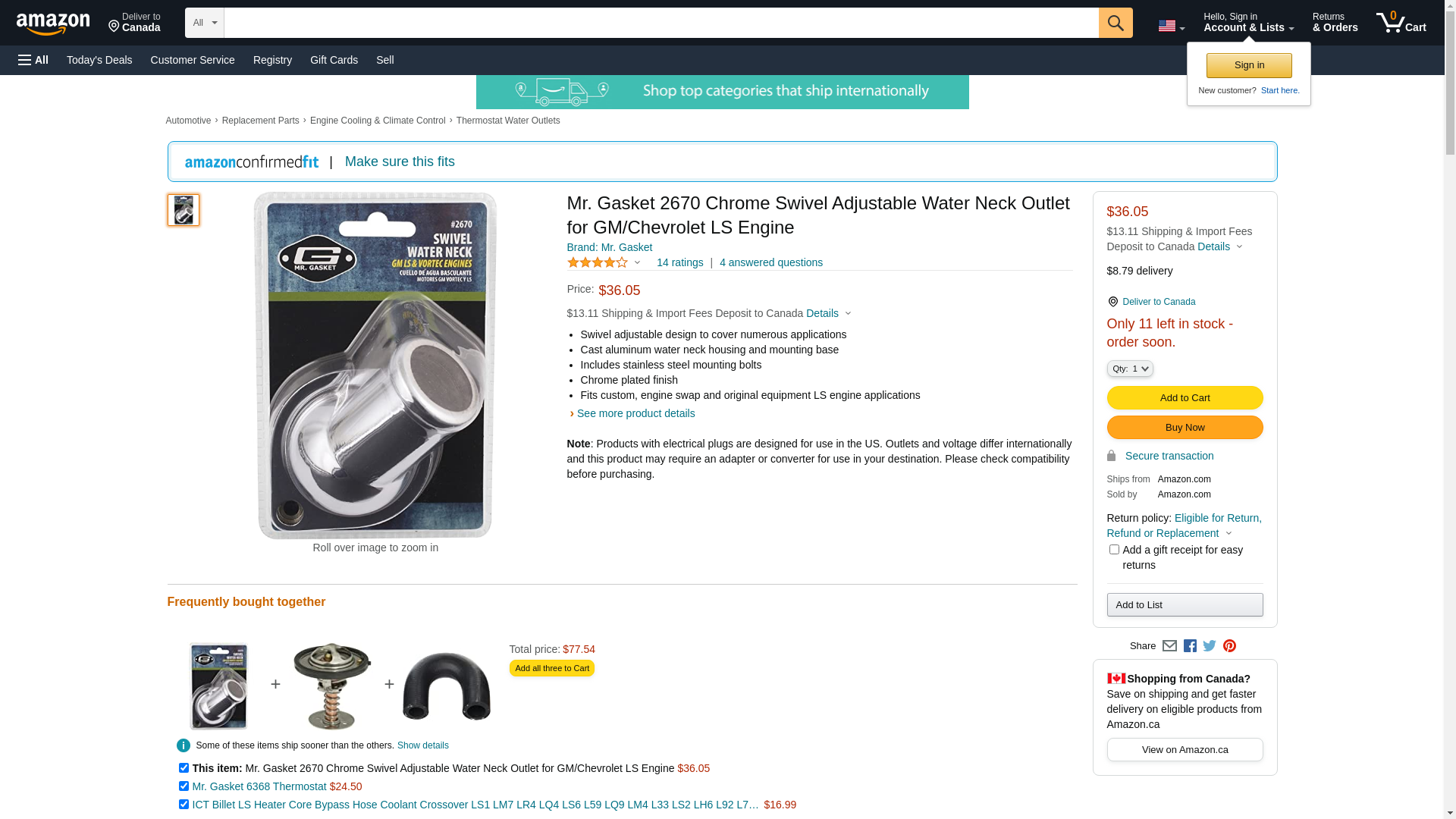 Mr. Gasket 2670 Chrome Swivel Adjustable Water Neck Outlet for GM/Chevrolet LS Engine