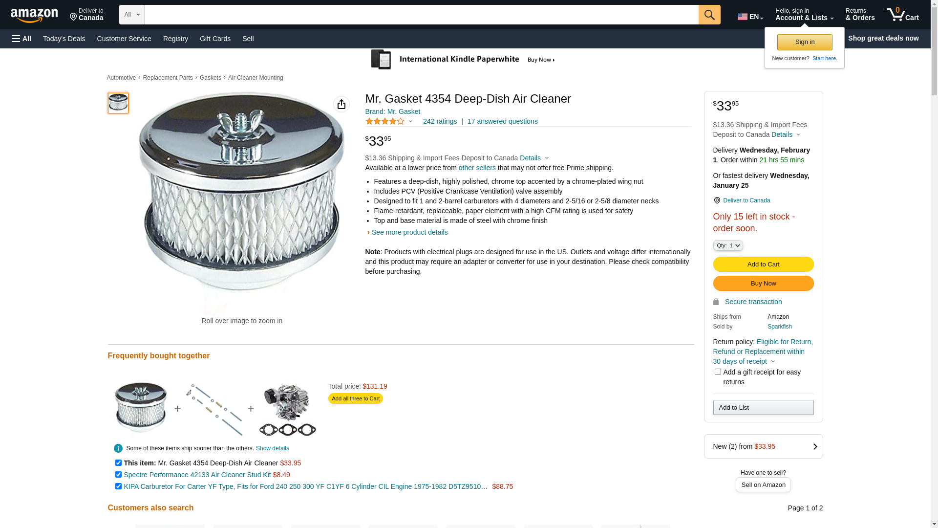 ![]() automotivestuff.com | MRGASKET-4354 | 1 | -2 | 1 | 1 @ $32.78 |