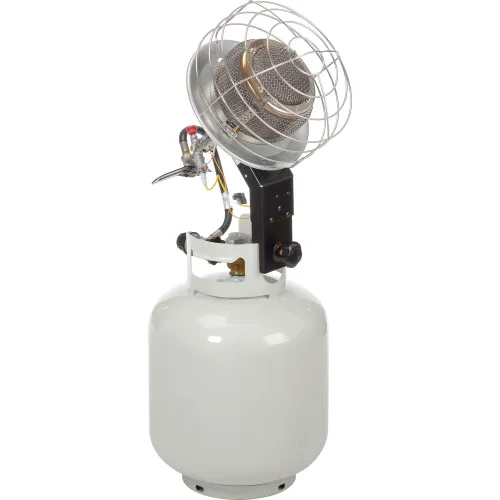 - Multi-directional radiant propane heater mounts directly to a 20 lb tank for easy portability