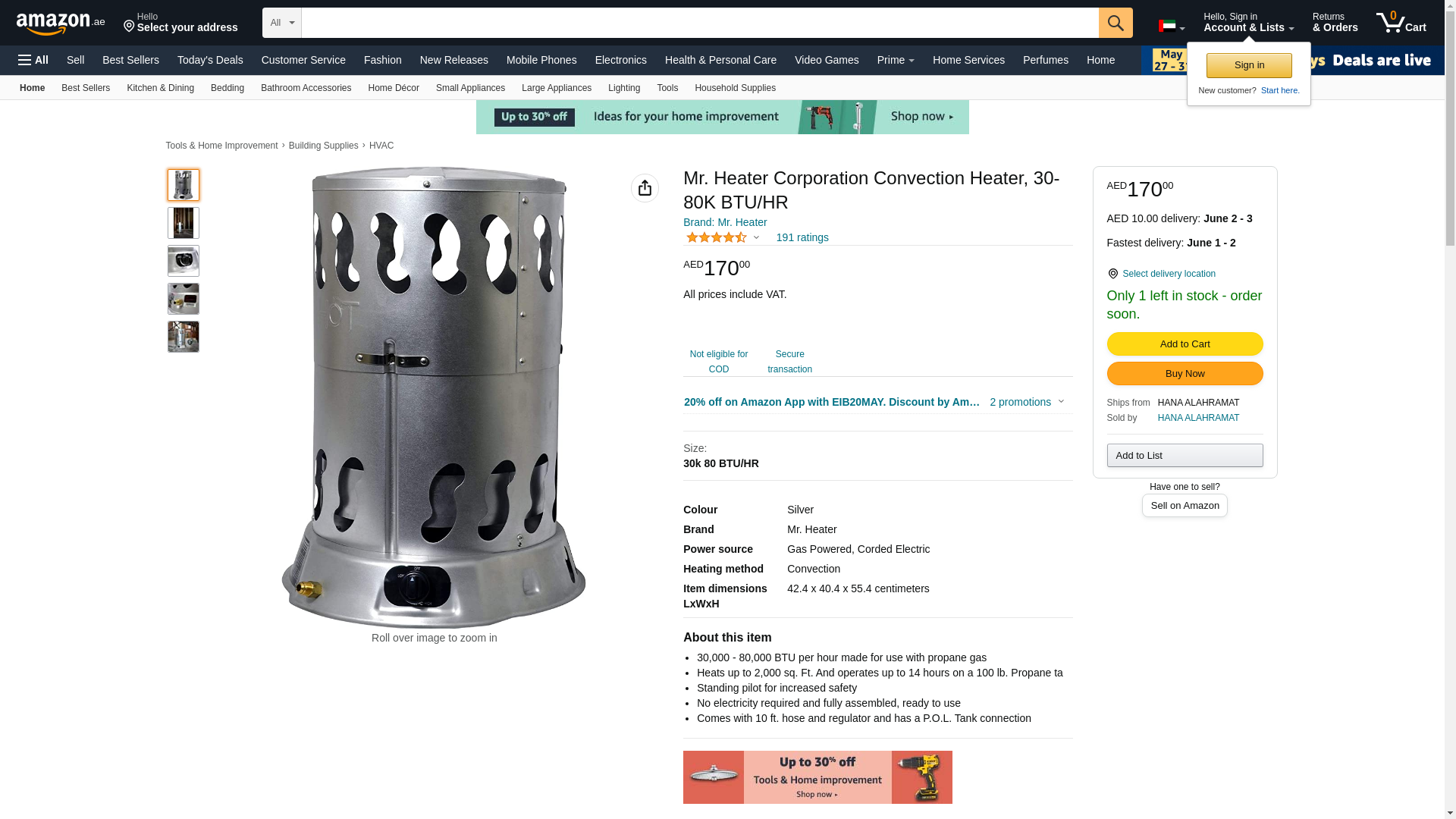 Mr. Heater Corporation Convection Heater, 30- 80K BTU/HR,Silver