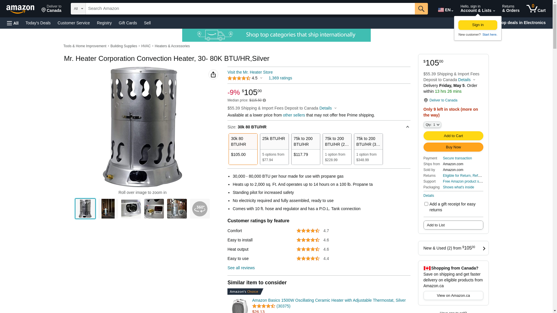 Mr. Heater MH80CV 30,000 - 80,000 BTU Propane Convection Heater
