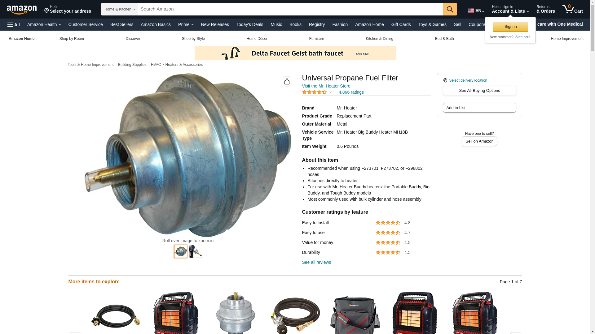 Heater Fuel Filter, For Use With Mr. Heaters Buddy and Big Buddy Heaters When Using Hose Connection and Leaving Gas In Hose Under Pressure. Warning: This product can expose you to chemicals which is [are] known to the State of California to cause cancer and birth defects or other reproductive harm.