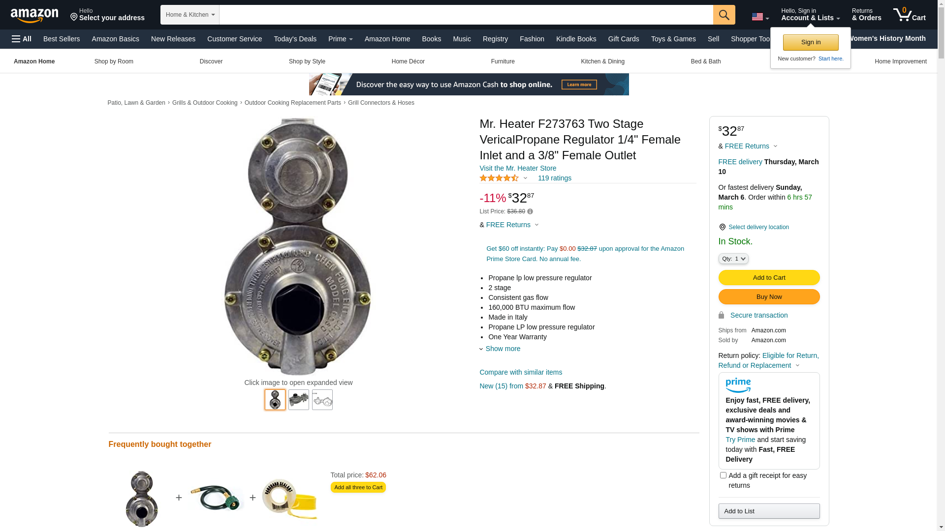 Sold as 2 units at $26.65 per unit. (1 unit = each) Provides constant gas pressure to LP appliances, especially when dealing with multiple appliances. 11" wide low pressure fitting. Casing. Manufacturer number: F273763. SKU number: 4288650. Country of origin: Italy. Distributed by Mr. Heater Corp.