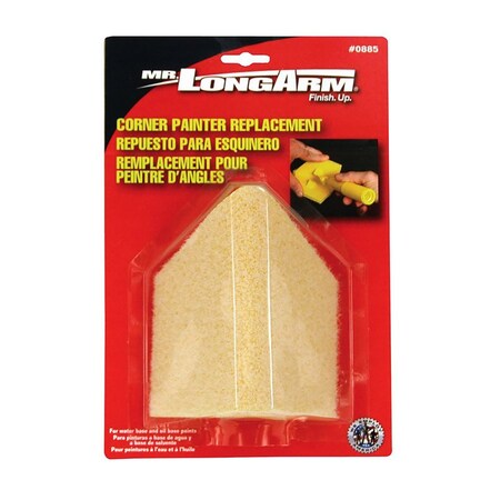 Rreplacement pad for 0880 corner painter. Flocked foam pad provides a smooth even finish . Use with water base and oil base paints.; ; Brand Name: Mr. LongArm Width: 5.4 in. Length: 8 in. Color: Yellow Material: Nylon/Plastic Product Type: Corner Painter Number in Package: 1 pc Packaging Type: Carded
