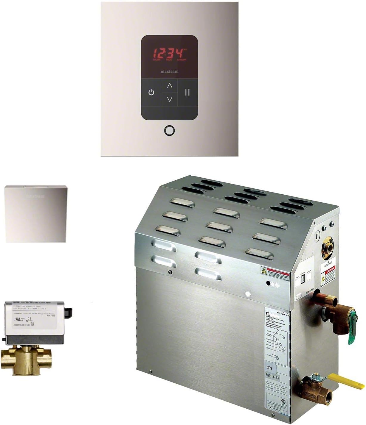 Mr.Steam eSeries MS150EC1 6kW Steam Bath Generator at 240V with iTempo Square Control Polished Nickel with matching AromaSteam SteamHead, and AutoFlush (max 107 cubic feet)