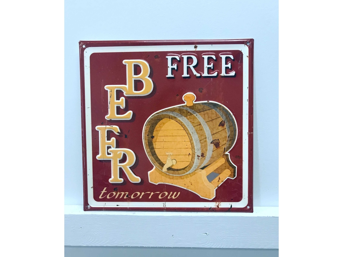 Mr. MJs Trading IV-W14-GT041 Free Beer Tomorrow Vintage Metal Wall Decor - Yellow & Maroon