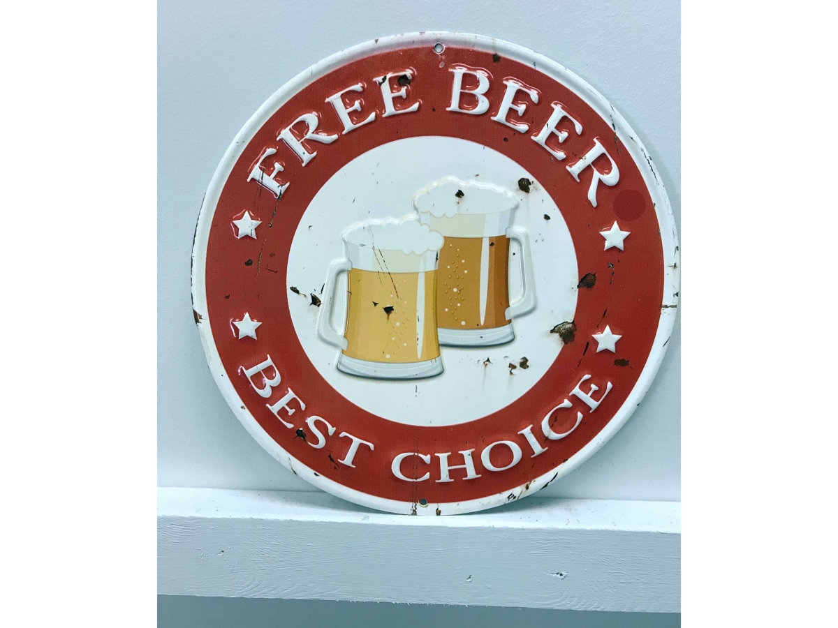 Mr. MJs Trading IV-W14-GT052 Free Beer Vintage Metal Wall Decor - Ruby & Yellow