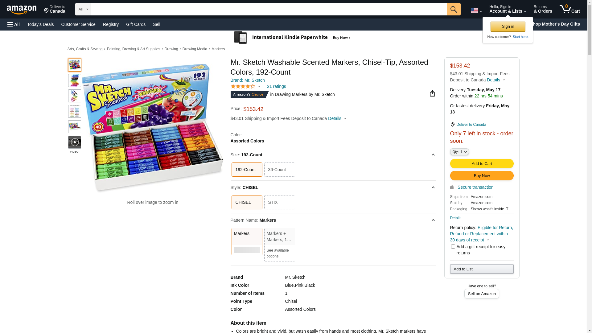 Mr. Sketch Washable Markers, Scented, Chisel Tip, Assorted Colors, 192 Count