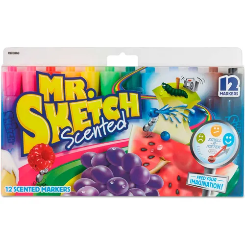 <br><br>Each one of our bright, water-based colors comes with its own fun scent. The scents are: Raspberry, Watermelon, Cherry, Orange, Banana, Mint, Apple, Fruit Punch, Blueberry, Grape, Cinnamon and Licorice. Mr. Sketch markers are great for drawing thick or thin lines, and are perfect for young artists. Conforms to ASTM D-4236.<br><br>- Markers are great for drawing thick or thin lines.<br>- 12 Assorted Colors.<br>- Chisel Tip.<br>- 12 Color Set.<br>- Certifications and standards: Certified AP nontoxic and conforms to ASTM D-4236.<br>- Sold as 12/Box.<br><br>Safety Data Sheet