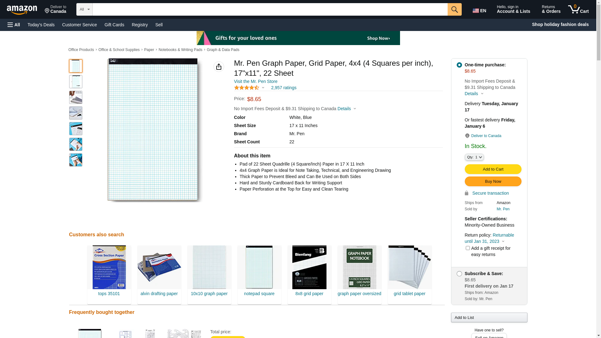 <p>Mr. Pen quadrille paper pad is perfect for engineering and technical drawing as well as everyday note taking. This pad is great for using with 1/4 inch scaled rulers and templates.</p> <p> </p> <p>The package includes:</p> <ul> <li>Pad of 22 sheet quadrille (4 square/inch) paper in 17 x 11 inch</li> <li>4x4 Graph paper is ideal for note taking, technical, and engineering drawing</li> <li>Thick paper to prevent bleed and can be used on both sides</li> <li>Hard and sturdy cardboard back for writing support</li> <li>Pad has perforation at the top for easy and clean tearing</li> </ul>