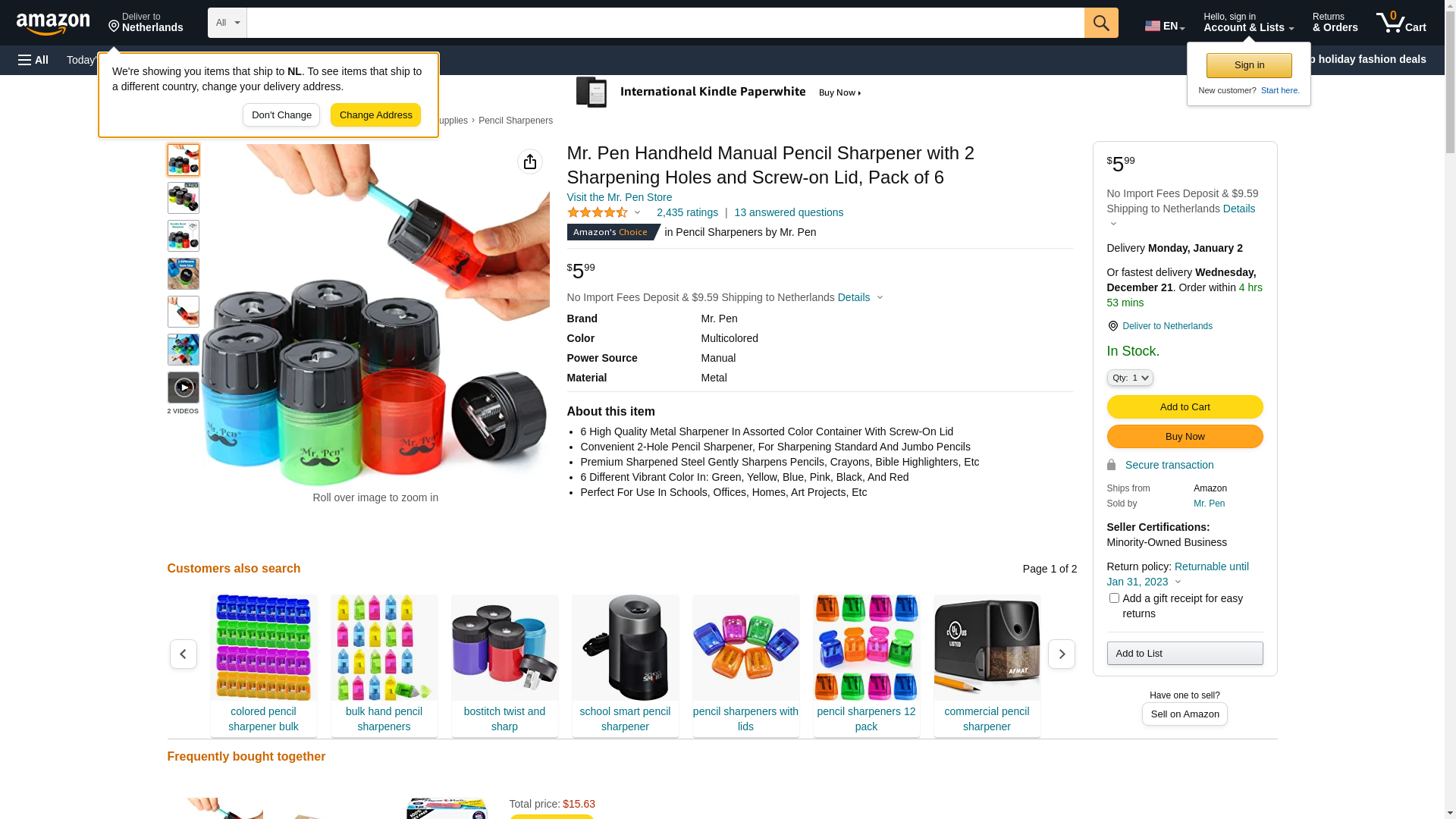 <p><strong>Mr. Pen – 6 pc pencil sharpeners</strong> are made from premium steel blade to gently sharpen pencils. They are perfect for offices, schools, and homes. You will always stay sharp!<br /> <br /> The pack includes:</p> <ul> <li>6 high quality metal sharpener in assorted color container with screw-on lid</li> <li>Convenient 2-hole pencil sharpener, for sharpening standard and jumbo pencils</li> <li>Premium sharpened steel gently sharpens pencils, crayons, bible highlighters, etc</li> <li>6 different vibrant color in: green, yellow, blue, pink, black, and red</li> <li>Perfect for use in schools, offices, homes, art projects, etc</li> </ul>