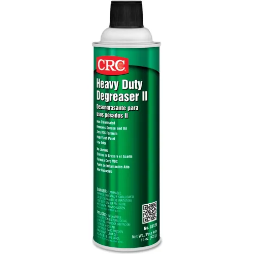 03120 Style: Container Size:20 oz, Pkg Aerosol Can (03120) This item features: -High flash point. -Leaves no residue. -Non-conductive and non-corrosive. -High dielectric strength. -Low odor compound, unlike citrus-based products. -Contains no Class I or Class II Ozone Depleting Chemicals. -Flash Point: 142.00 F. -Dielectric Strength: 29000.0 V/mil. -VOC: 100.0 pct. -Color: Clear. -Odor: Mild. -Chemical Compound: Petroleum. -Specific Gravity: 0.8300. -Applicable Materials: Metals, Plastic, Nylon. -Removes: Grease, Dust, Ink, Oil, Tar, Wax. -Resistance: Corrosive Process. -Style: Container Size:20 oz, Pkg Aerosol Can - Price is for 12 Cans. -Style: Container Size:1gal, Pkg Bottle - Price is for 4 Gallons. -Style: Container Size:5gal, Pkg Pail - Price is for 1 PAL, 5GAL/PAL. Testing and approvals: -Meets OEM specification McDonnell Douglas CSD-1, Category II. -Meets 1998 USDA Guidelines for use in meat and poultry plants. Material safety data sheets and specs: Heavy Duty Degreaser II (DS).pdf Heavy Duty Degreaser II (MSDS).pdf