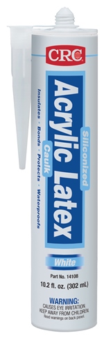 CRC 14108 Acrylic Latex Caulk, 10.2 fl oz, 12 fl. oz. Cartridge, White