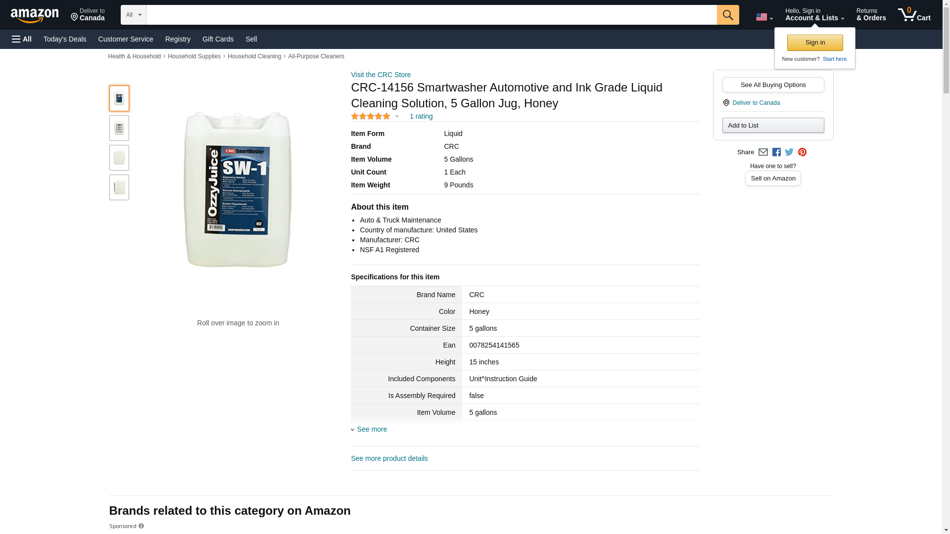 CRC-14156 Smartwasher Automotive and Ink Grade Liquid Cleaning Solution, 5 Gallon Jug, Honey