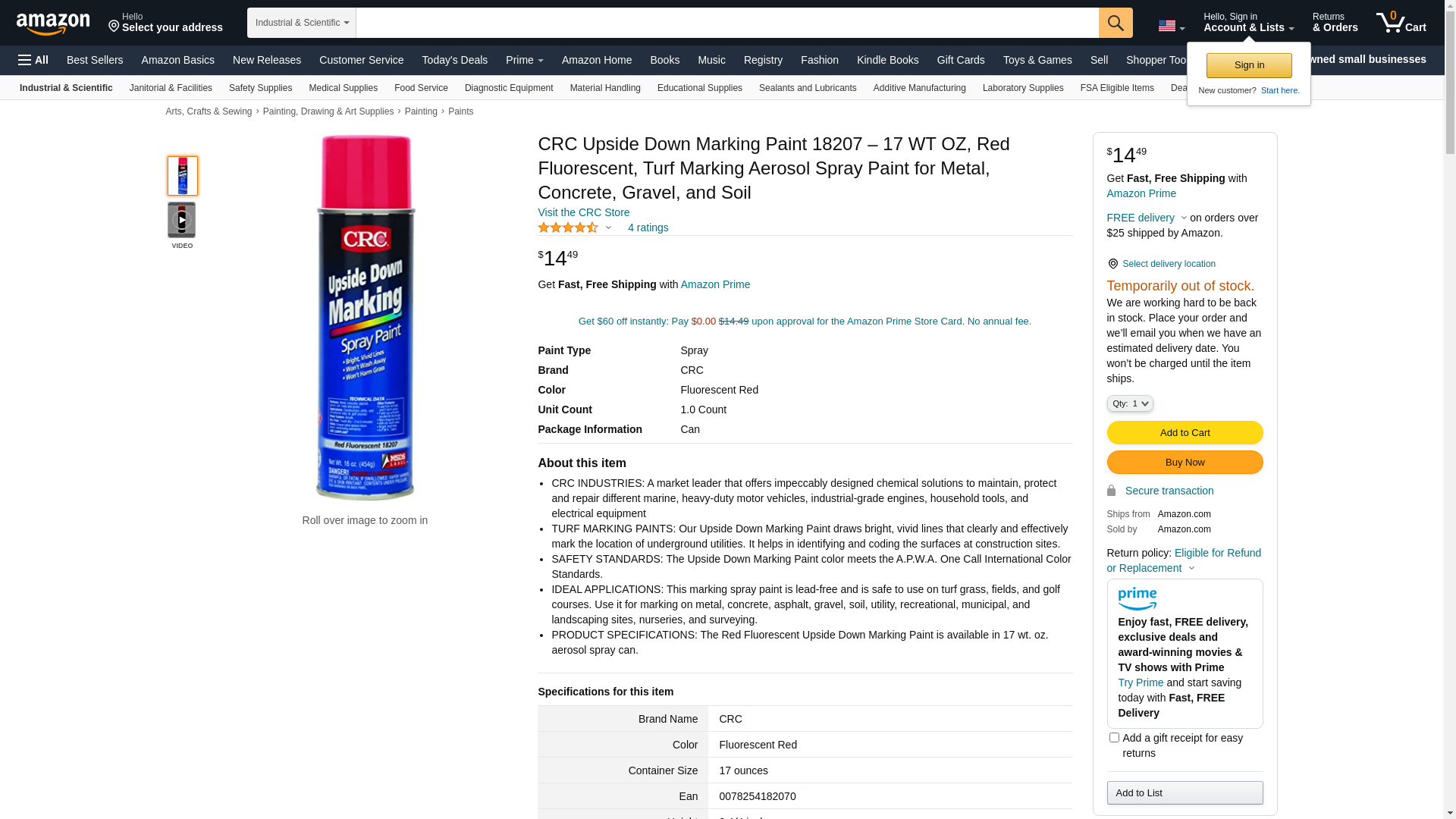 - PRODUCT SPECIFICATIONS: The Red Fluorescent Upside Down Marking Paint is available in 17 wt. oz. aerosol spray can.