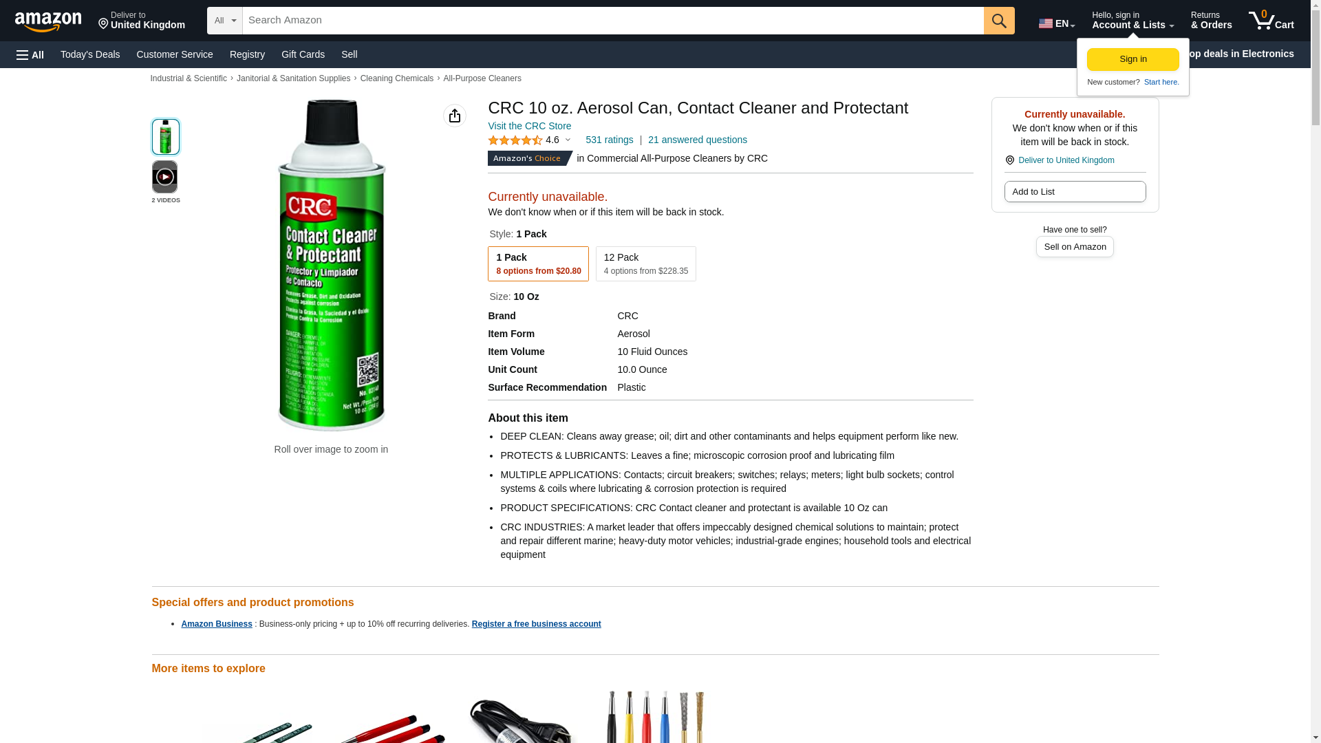 - PRODUCT SPECIFICATIONS: CRC Contact cleaner and protectant is available 10 Oz can