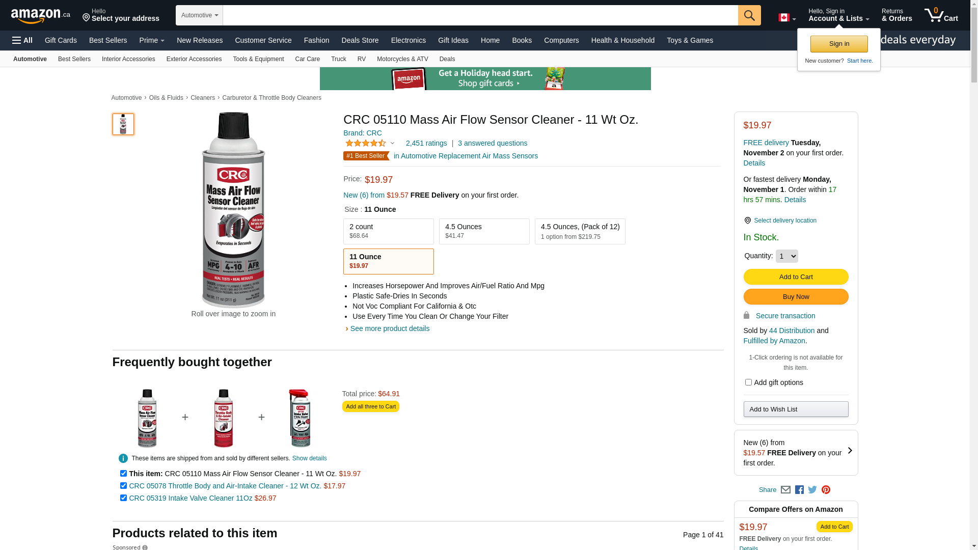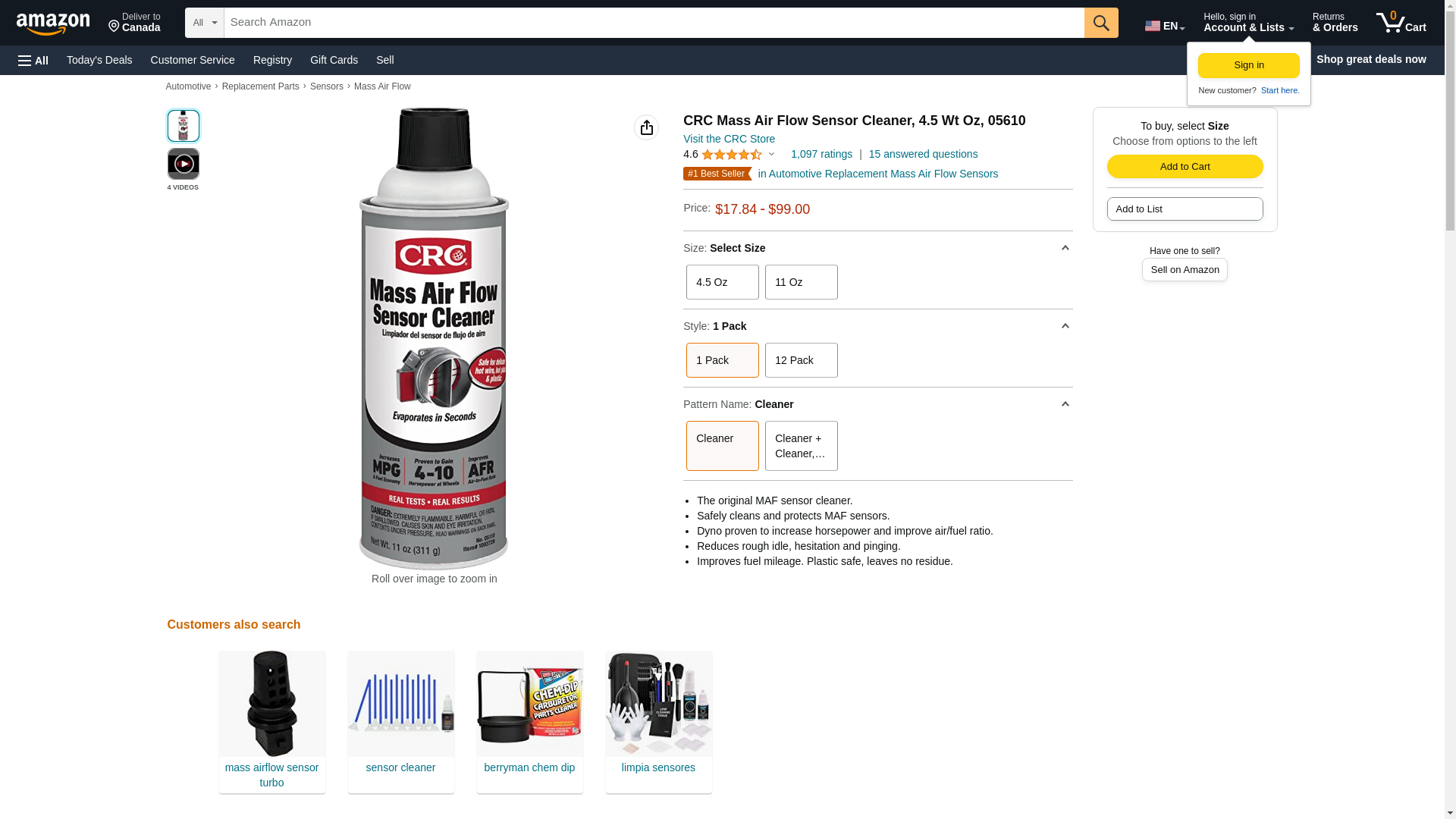 - CRC Mass Air Flow Sensor Cleaner, 11 oz., CASE OF 6 (05110-C)