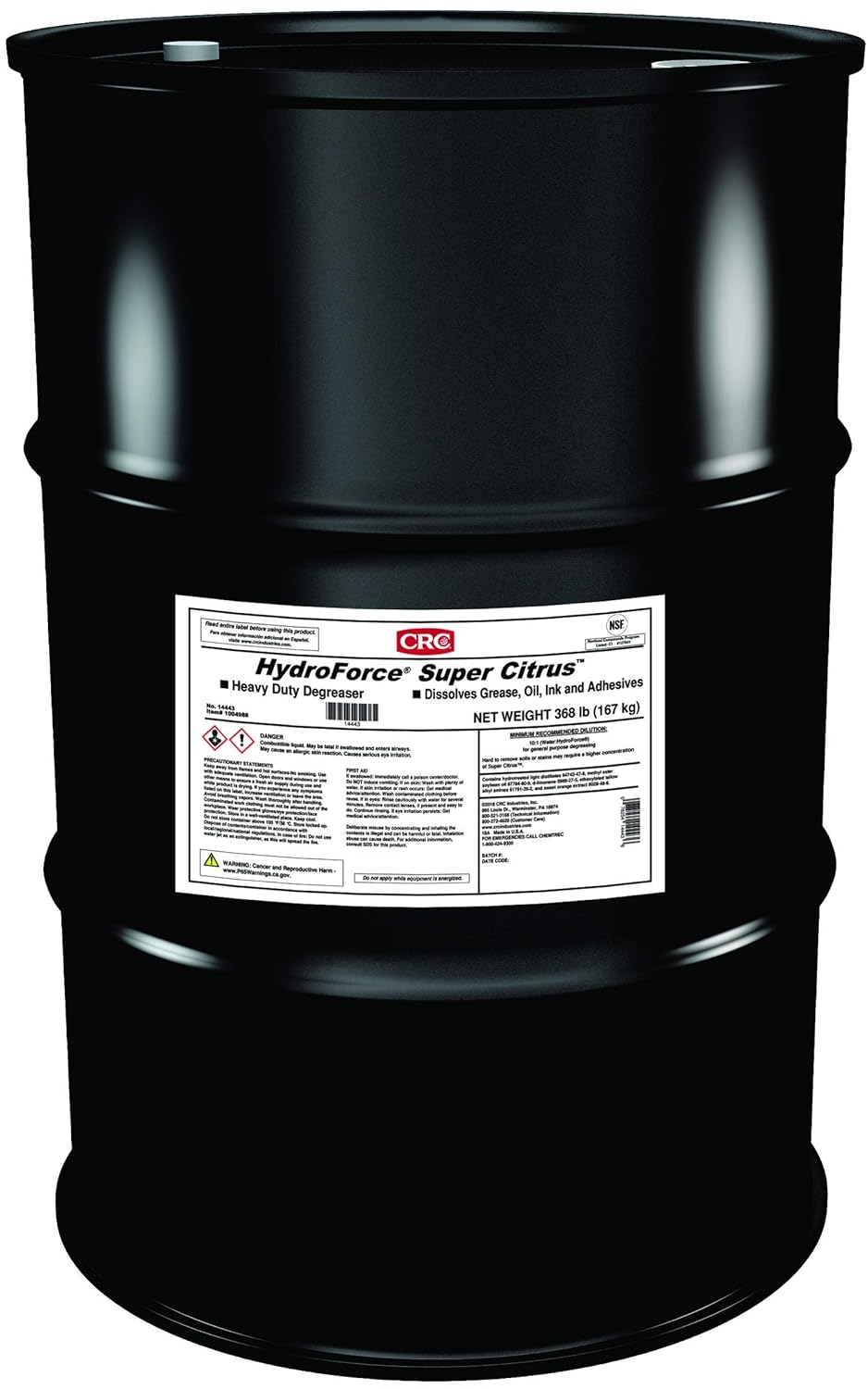 CRC HydroForce Super Citrus Heavy Duty Degreaser, 55 Gal, 14443