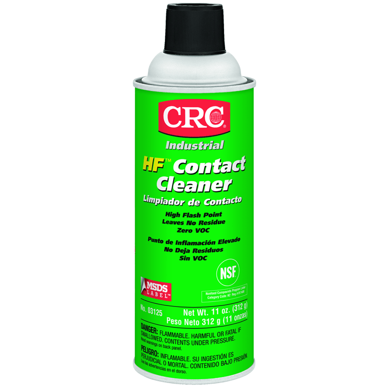 - PRODUCT SPECIFICATIONS- HF Contact Cleaner is available in an 11 WT OZ aerosol can; This product has a flashpoint of 204°F; This is NSF K2 Registered.
