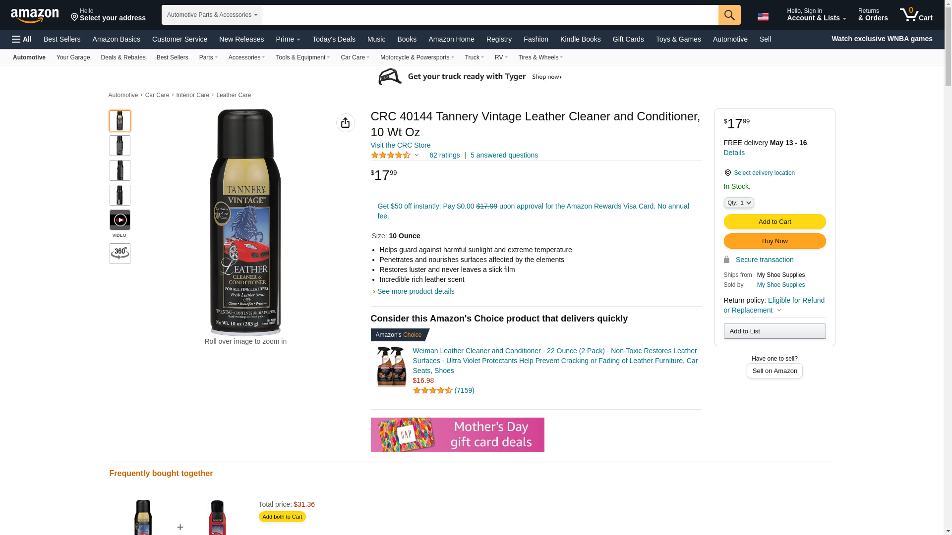 CRC 40144 :: Specially formulated with aloe vera & glycerin, two moisturizers that help hydrate leather, making it supple & smooth. Prevents drying & cracking due to sunlight & extreme weather. Single application cleans & conditions to renew leather's natural luster. :: PLATT ELECTRIC SUPPLY