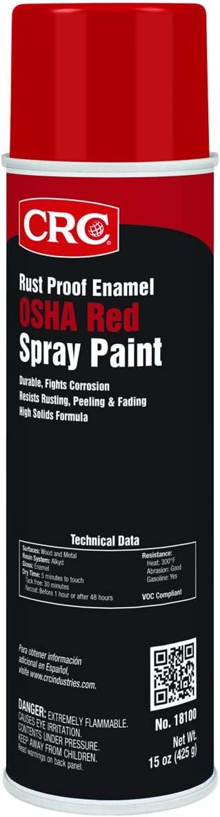 - PRODUCT SPECIFICATIONS: Rust Proof Enamel Spray Paint is available in a 15 wt oz. spray can. Only paint in the industry to offer the CRC S.D.[L], a current SDS printed on the reverse side of the product label.| Paint color: OSHA Red