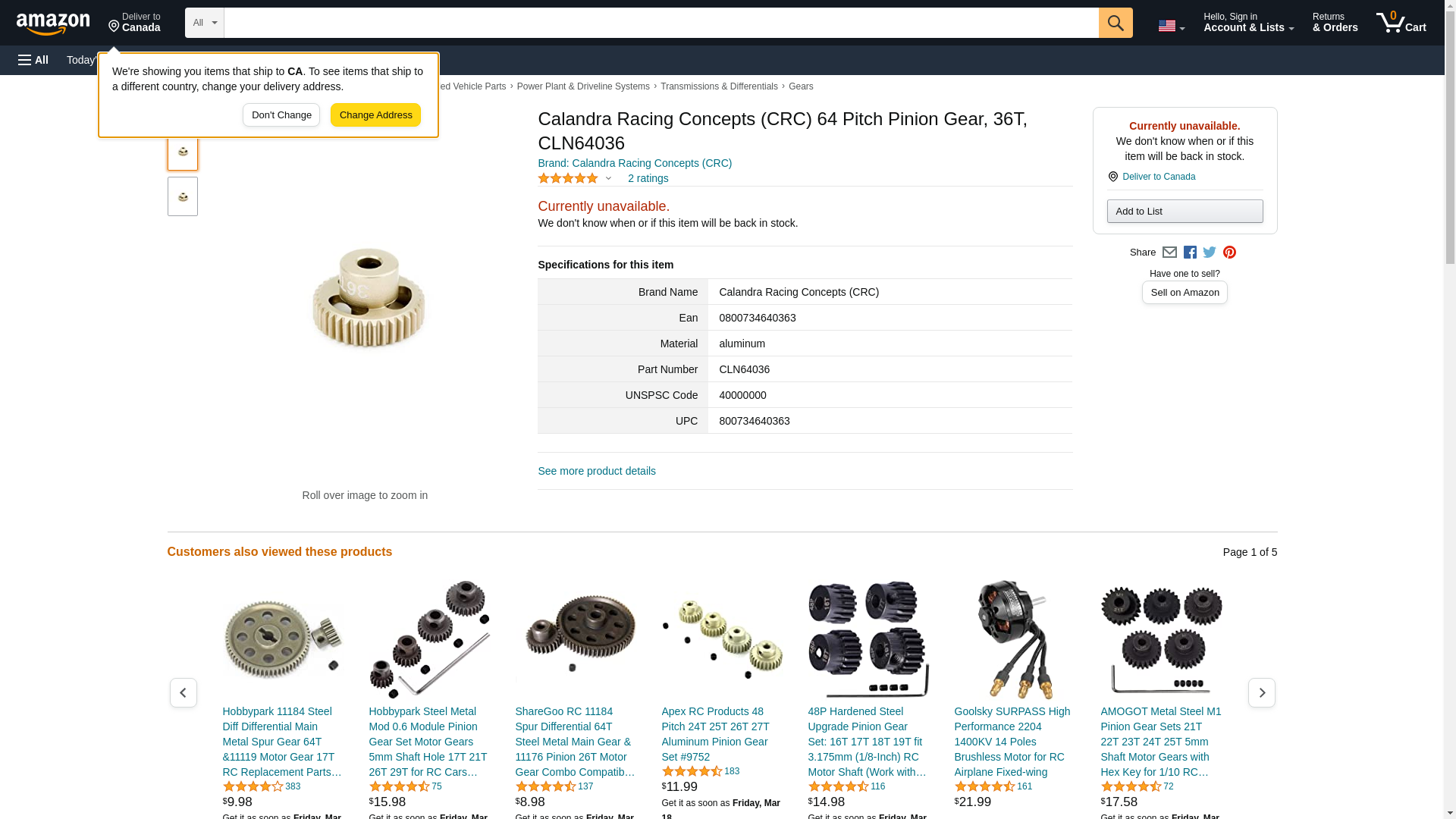 Calandra Racing Concepts (CRC) 64 Pitch Pinion Gear, 36T, CLN64036